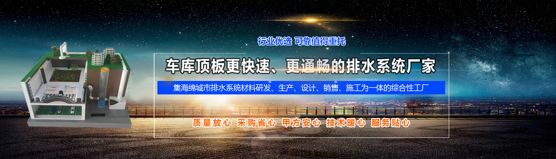 我廠致力于海綿城市材料的研發生產與銷售,注冊資金5000萬,占地32000平方米,獨創區塊鏈智慧排水收集系統是更專業的零坡度有組織虹吸排水系統生產廠家,主要產品有PED高分子防護排水異型片自粘土工布、虹吸排水槽、粘霸、膠粘劑、土工布、沉淀觀察井、透氣觀察管等系統材料,現有排水系統設備25條,年產10000萬平方,公司追求高質量穩健發展,為數以萬計的種植屋面頂板、商用建筑提供高品質的排水系統解決方案,及時排水+有效防水,強強聯合,杜絕滲漏,現已成為優質的建材系統生產服務商! 公司致力于“”智慧排水系統的研發與推廣,積極推進知識產權建設,目前已授權商標8項,發明專利和實用新型專利20余項,研發更